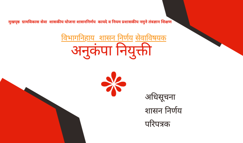 01) महाराष्ट्र राज्य शासनाच्या सर्व कार्यालयात अनुकंपा कारणास्तव करावयाच्या नेमणूक