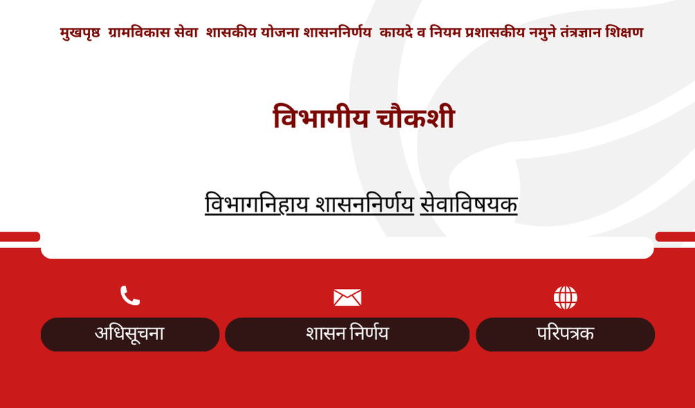 सुचना सदर वेबसाईट ही कर्मचारी-अधिकारी यांना दैनदीन कामकाजात आस्थापना विषयक, लेखाविषयक, योजनांची माहिती, ज्ञान प्राप्त व्हावे व दैंनदिन कामकाजात अचूक वापर करून शासन निर्देशां नुसार अचूक अंमलबजावणी करता यावीया उद्देशाने निर्मीत केलेली आहे.
