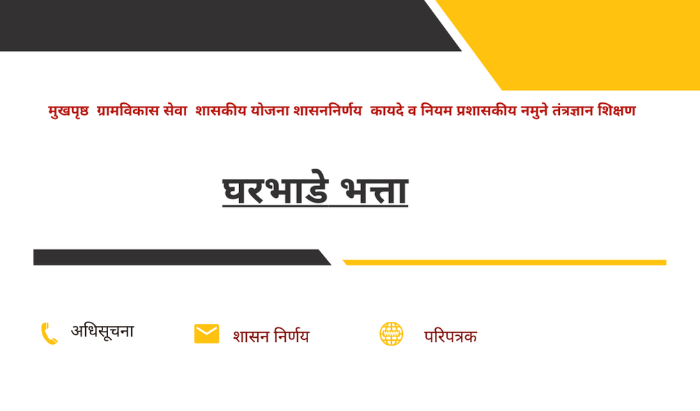 या लेखात, आम्ही आपणाला घरभाडे भत्ता याबाबत शासन निर्णय माहिती दिली आहे आम्हाला आशा आहे की, तुम्हाला ती आवडली असेल. माहिती आवडली असेल तर, सदरची माहिती तुमच्या सहकारी, मित्रांनाही शेअर करा.