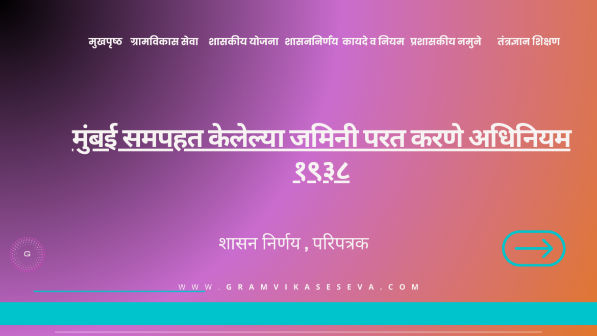 मुंबई समपहत केलेल्या जमिनी परत करणे अधिनियम १९३८ THE BOMBAY FORFEITEDLANDRESTORATION ACT १९३८ CLICK FOR DOWNLOAD
